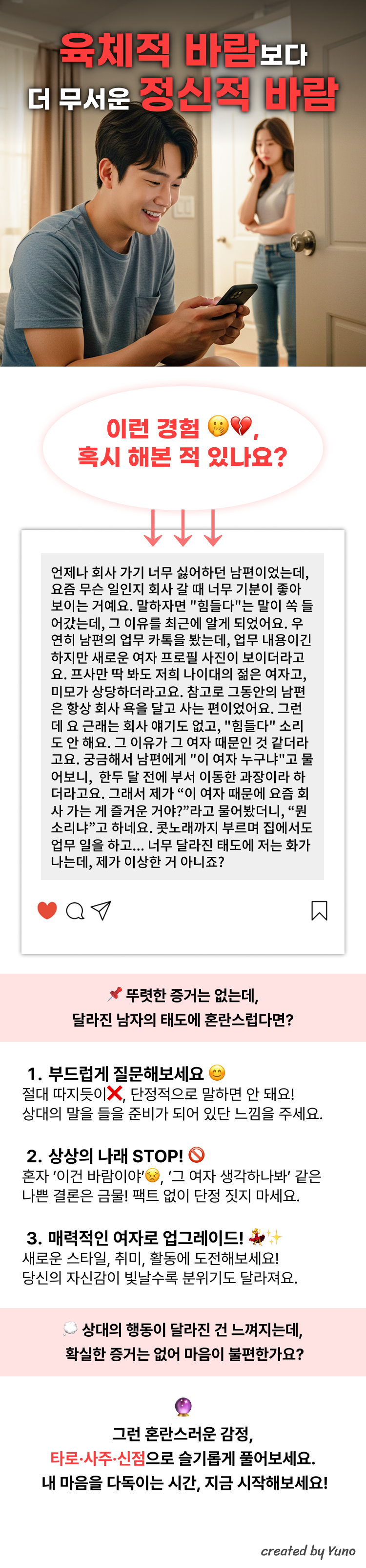 섣불리 판단하고 따지는것은 절대 안돼요! 상담으로 해결해보세요!